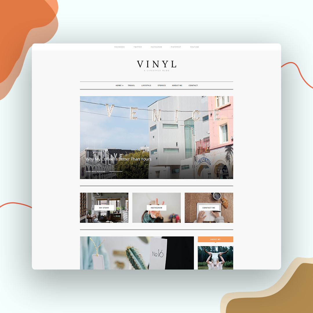 Welcome to Vinyl – an Elegant, Personal Blogging and Magazine WordPress Theme. Vinyl is a stylish and beautiful, responsive WordPress blog theme perfect for any type of blog such as travel, photography, personal, news, fashion, food, or tech blog.